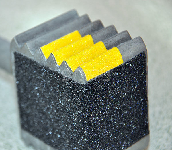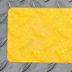 Противоскользящая желтая лента на гибкой алюминиевой подложке идеальный вариант защиты от скольжения, там, где поверхность имеет сколы, а на ступенях есть рифления.
