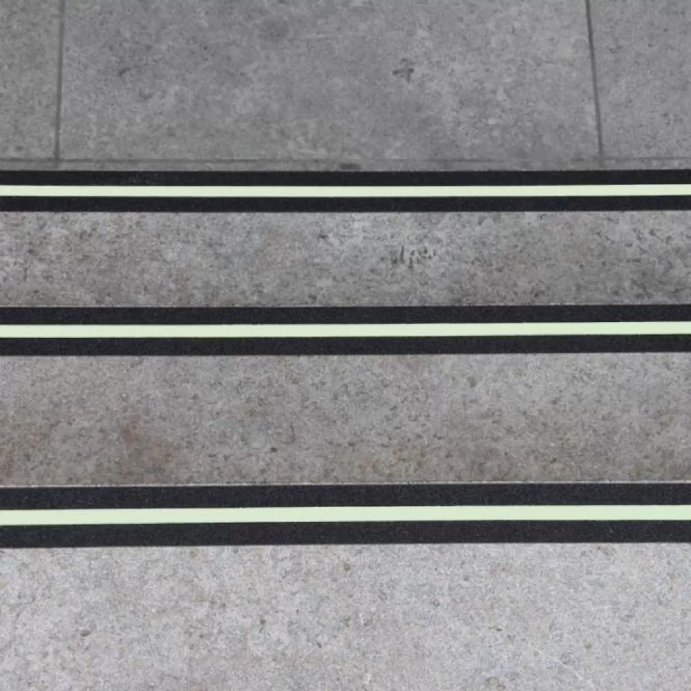 Противоскользящая лента со светящейся сигнальной полосой посередине.